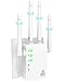 This dual-band WiFi extender enhances your wireless network with both 5G (1200Mbps) and 2.4G (300Mbps) frequencies, ensuring smooth streaming, gaming, and browsing. Equipped with four high-performance antennas, it extends your WiFi signal up to an impressive 12880 sq. ft, effectively eliminating dead zones throughout your home and even in outdoor spaces. It is designed to support over 105 devices simultaneously, making it ideal for large households with numerous smartphones, smart TVs, gaming consoles, and smart home assistants like Alexa and Google Chromecast. Setup is straightforward, with options for one-press WPS connection or configuration via a web interface, and it also includes an Ethernet port for wired device connections. The extender ensures your network is protected with advanced WEP/WPA/WPA2 security protocols.